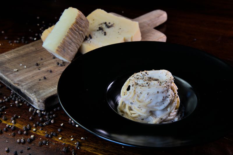 The scientifically engineered pecorino cream can withstand temperature changes better than the classic cheese-starchy water mixture made with pasta cooking water and can even be reheated.